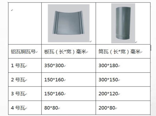 鋁銅瓦板瓦的規格
