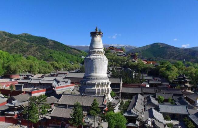 文殊發塔,又稱小白塔,位于方丈院東邊,與方丈院僅一墻之隔,喇嘛式磚塔,通高十米。據傳塔內收藏有文殊菩薩顯圣時遺留的金發,故名。文殊發塔始建于元大德五年(1301),明萬歷二十四年(1596)寺僧圓廣重建,后遭焚燒,其后又有重建。
