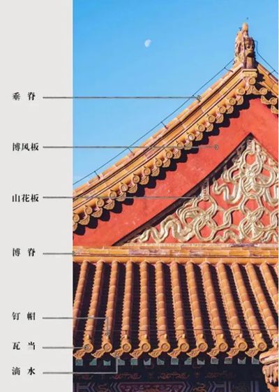 博風(fēng)板:也叫搏風(fēng)、搏縫板或封山板,在宋朝時(shí)就被稱為博風(fēng)板。常常用于古代歇山頂和懸山頂建筑中,這些建筑的屋頂兩端會(huì)伸出山墻之外。為了抵御風(fēng)雪,人們用木條釘在檁條頂端,同時(shí)它也能起到遮擋桁(檁)頭的作用。