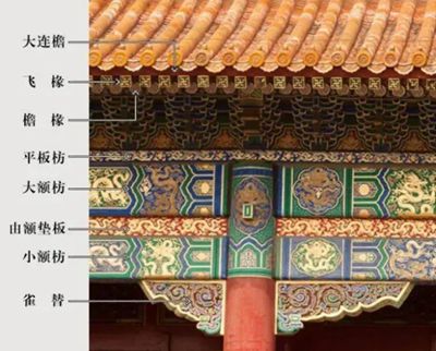 大連檐:在清式建筑大木作中是一種構(gòu)件,宋式則稱作“小連檐”。它位于屋檐檐頭,安置在飛椽之上,其上皮是瓦口木,呈三角形斷面。長(zhǎng)度能達(dá)到仔角梁端頭,會(huì)隨著翼角翅起而緩緩上升。