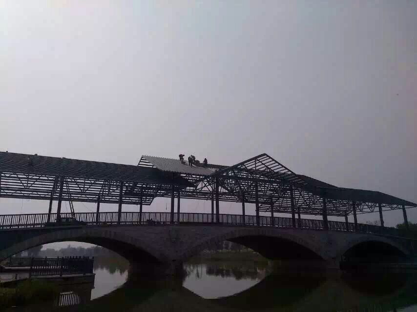 該橋將采用我們公司研發生產的新型連體仿古鋁瓦,施工快,安裝方便!為客戶把該橋做的更美觀,成為一道亮麗的風景而努力!